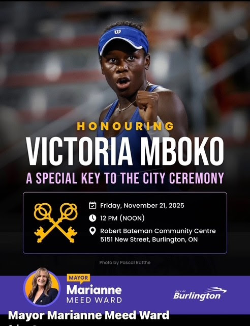 There will be a celebration of our local tennis celebrity Victoria Mboko this Friday in Burlington. Everyone is welcome!